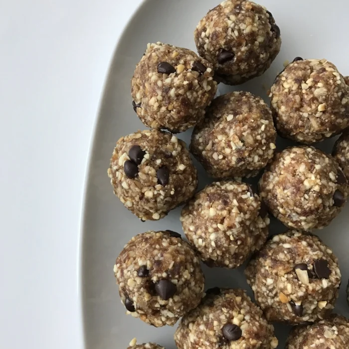 - Add remaining ingredients except for the chocolate chips, and process until combined. If it's too dry, add a teaspoon of water.